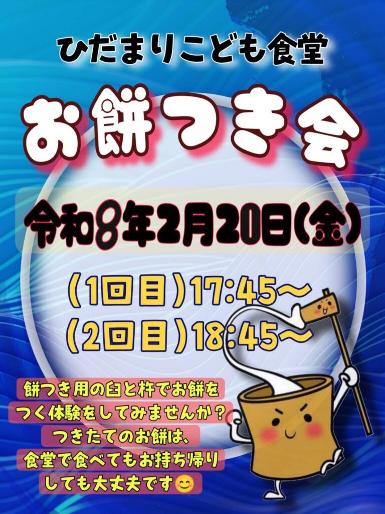 2月20日(金)に子ども食堂お餅つき大会があります!